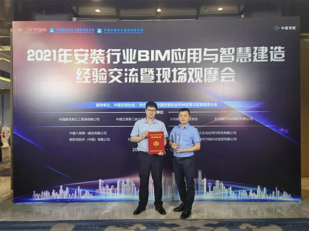 5月12日,由中國安裝協(xié)會BIM應(yīng)用與智慧建造分會承辦的2021年安裝行業(yè)BIM應(yīng)用與智慧建造經(jīng)驗交流暨現(xiàn)場觀摩會,在湖南省長沙市召開。會上對一批2020年安裝行業(yè)BIM技術(shù)應(yīng)用成果評價活動優(yōu)秀成果完成單位進行表彰,公司申報的“防城港鋼鐵基地一期工程鋼結(jié)構(gòu)及非標設(shè)備制作安裝BIM技術(shù)應(yīng)用”獲獎,評價等級為國內(nèi)先進、行業(yè)領(lǐng)先(Ⅱ類)。公司質(zhì)量技術(shù)部副總經(jīng)理黃湘富,三分公司副總經(jīng)理、總工程師姜斌代表公司參會并領(lǐng)獎。
